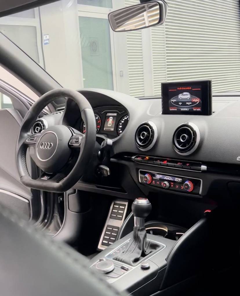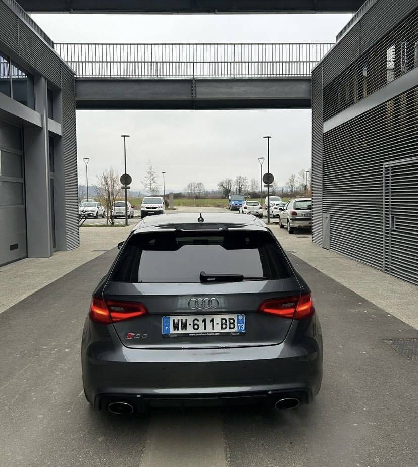 L'Audi RS3 8V1 2015 est une compacte sportive qui allie puissance et élégance. Équipée d'un moteur 2,5 litres cinq cylindres turbo, elle développe 367 chevaux et 465 Nm de couple, permettant une accélération de 0 à 100 km/h en seulement 4,3 secondes. La transmission intégrale Quattro assure une traction exceptionnelle, offrant une tenue de route précise et dynamique. Son design extérieur se distingue par des lignes agressives, des prises d'air accentuées et un diffuseur arrière sport. À l'intérieur, l'habitacle est raffiné, avec des matériaux haut de gamme et des finitions soignées, offrant un confort optimal. Les sièges sport et le système d'info et divertissement moderne ajoutent à l'expérience de conduite. L'Audi RS3 2015 est un choix parfait pour ceux qui recherchent une voiture à la fois pratique au quotidien et capable de performances époustouflantes sur la route. C'est une véritable référence dans le segment des compactes sportives.